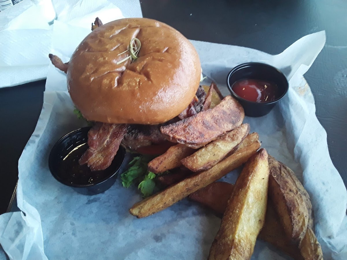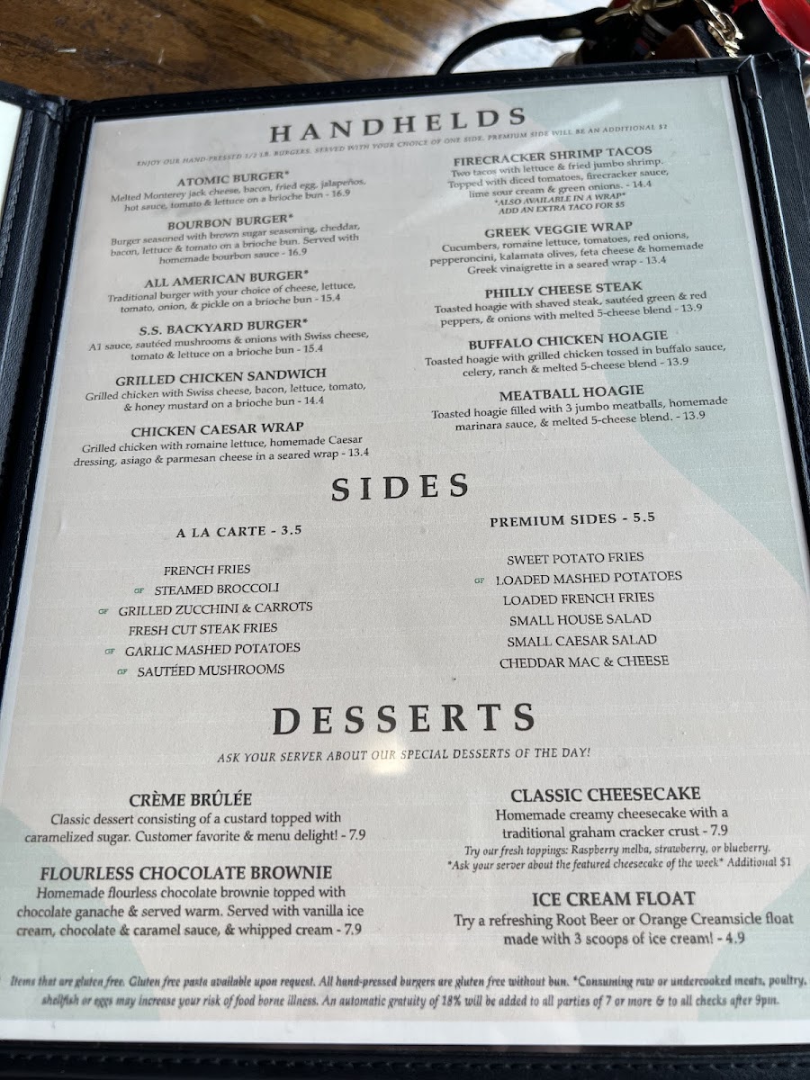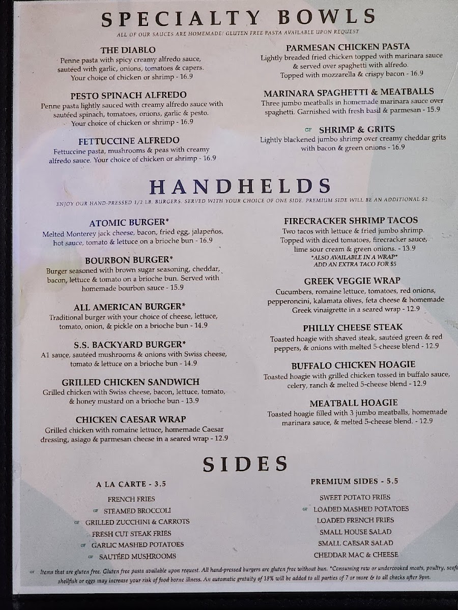 For a classic burger experience, the All-American Burger is a standout, featuring a juicy patty paired with your choice of cheese and fresh toppings—all served with a side of your choice for $16.90. If you're feeling adventurous, dive into the Atomic Burger, loaded with melted Monterey jack cheese, crispy bacon, and a fried egg that provides an exciting crunch and zest that is not to be missed.